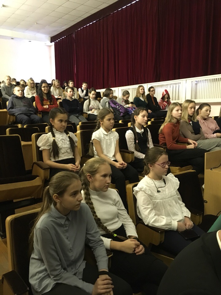 А потом состоялась встреча с гостем школы. Марина Георгиевна Макарова, известный журналист и правозащитник, не первый раз у нас в гостях. Сегодня она пришла показать свой документальный фильм - монолог Евгения Валериановича Устинова, прожившего блокаду ребёнком! Ему было в 41-м пять лет! Удивительный рассказ. Наши ребята сидели и внимательно слушали! Я уверена, что многие услышали!