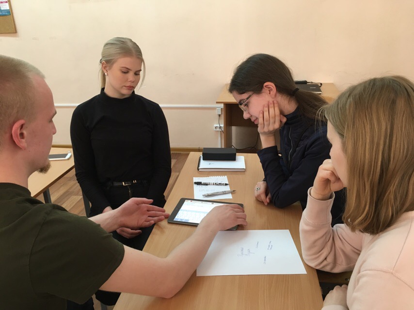 Завершился день викториной «Финский Петербург», придуманной для финнов нашими восьмиклассниками, которую провела для группы Юлиа Нокелайнен, наша стажёр. Юлиа сама из Турку из этой же гимназии!