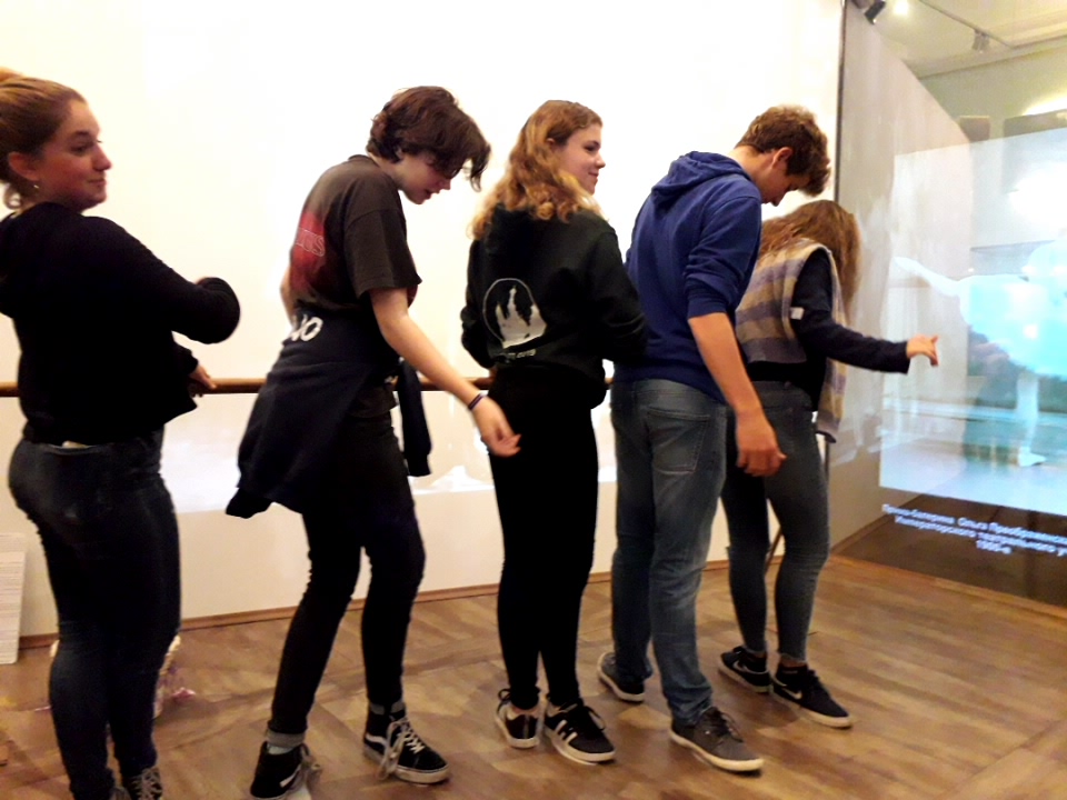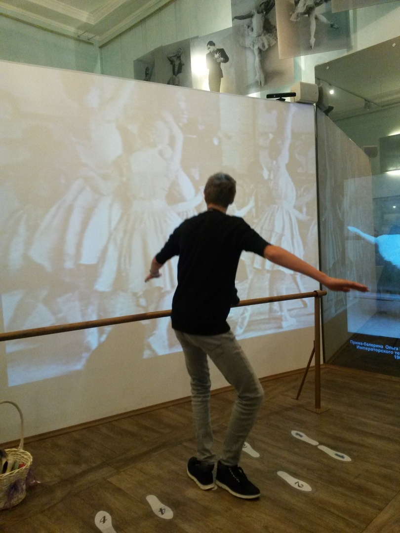 Далее по плану нашей сегодняшней программы – визит в Музей Театрального искусства. Впервые удалось организовать посещение этого интереснейшего места, которое я лично рекомендую к посещению всем классным руководителям и любителям русского сценического искусства. Музей интерактивный, у посетителей была возможность попробовать силы у балетного станка под видео-руководством Николая Цискаридзе.