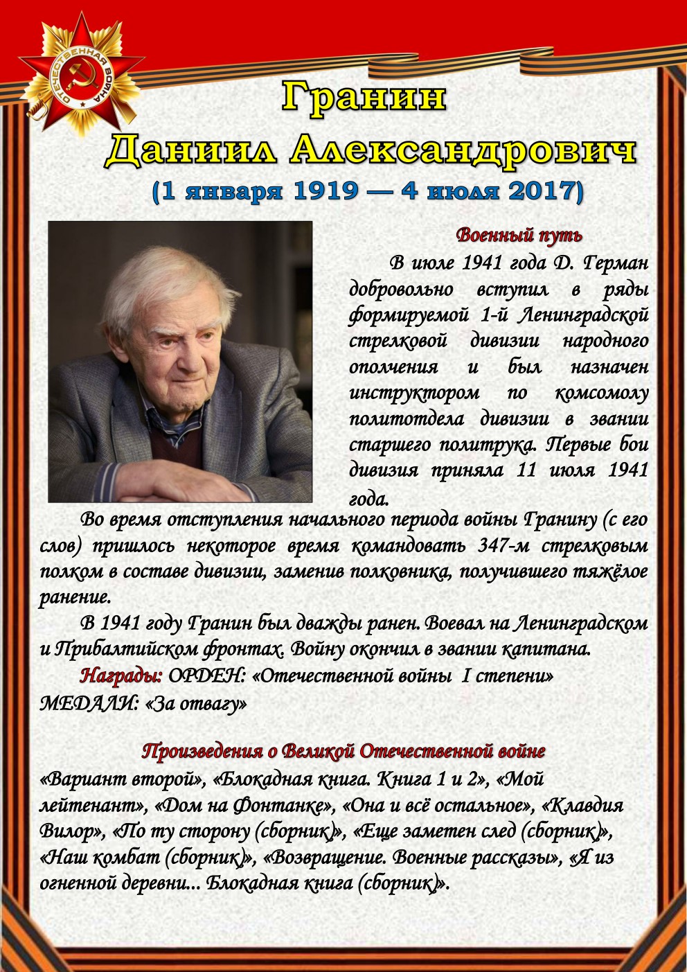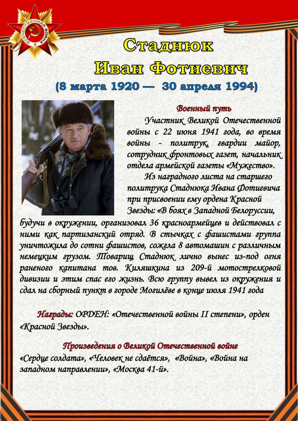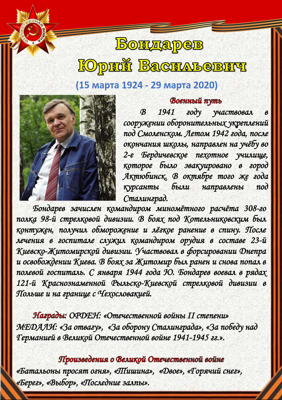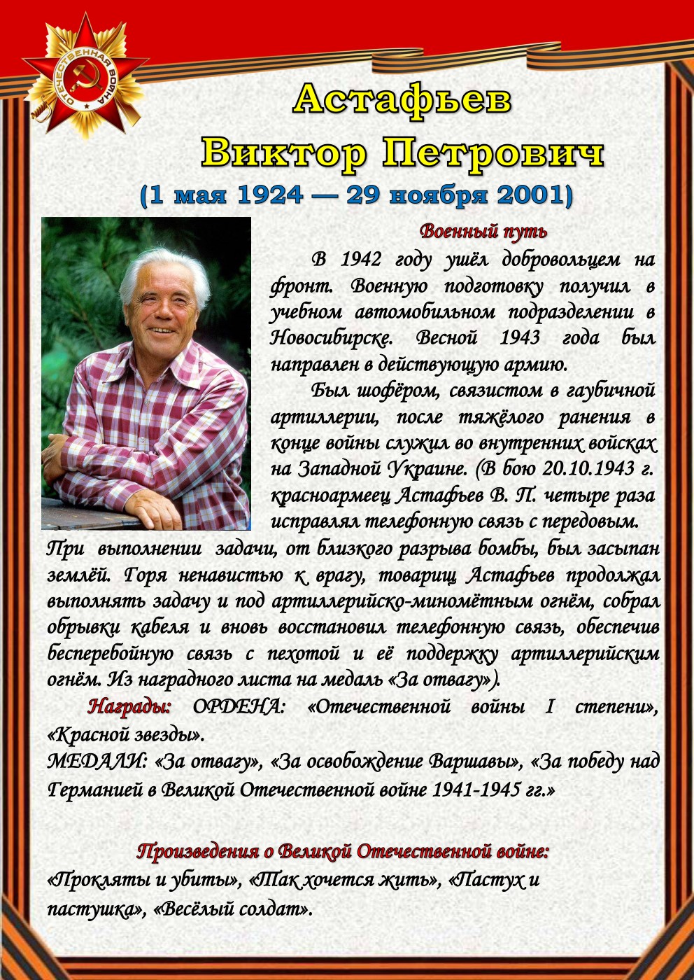 75 лет отделяют нас от начала Великой Отечественной войны (1941-1945). Но время не снижает интереса к этой теме, обращая внимание сегодняшнего поколения к далёким фронтовым годам, к истокам подвига и мужества советского солдата - героя, освободителя, гуманиста. Да, слово писателя на войне и о войне трудно переоценить.