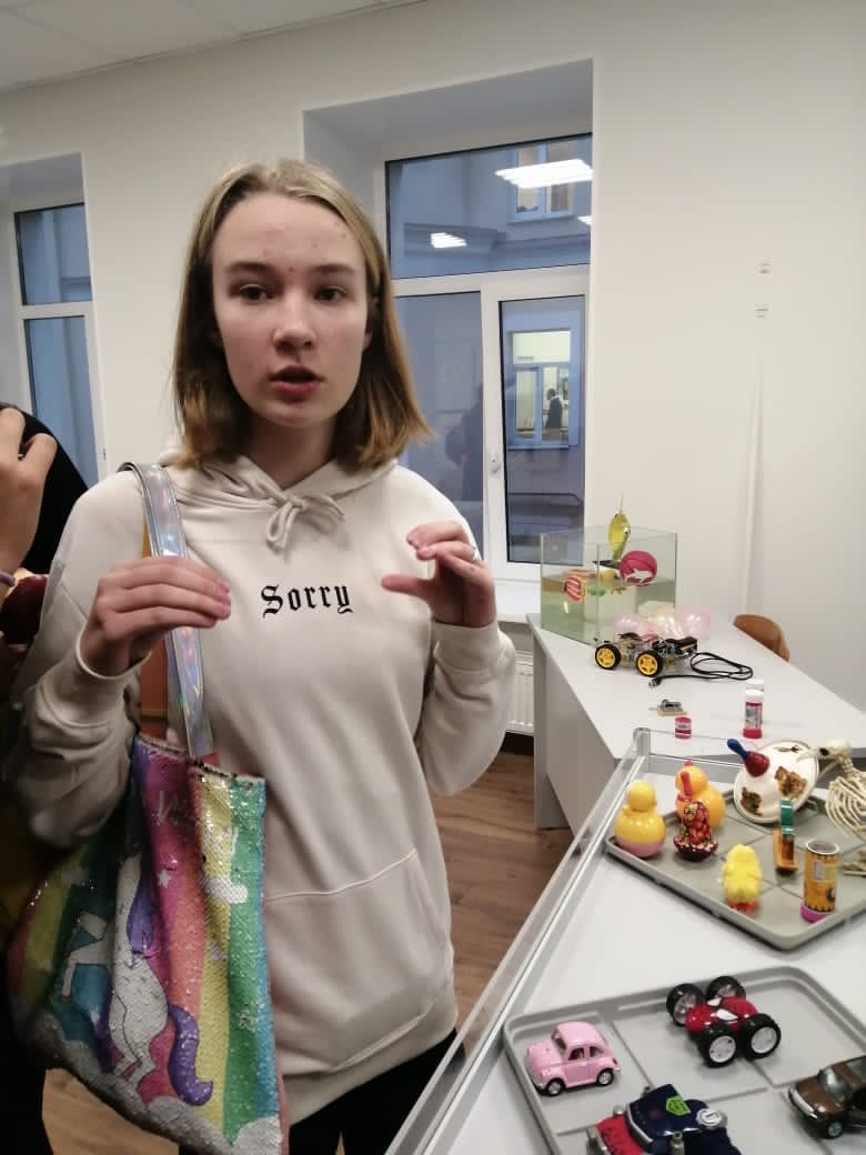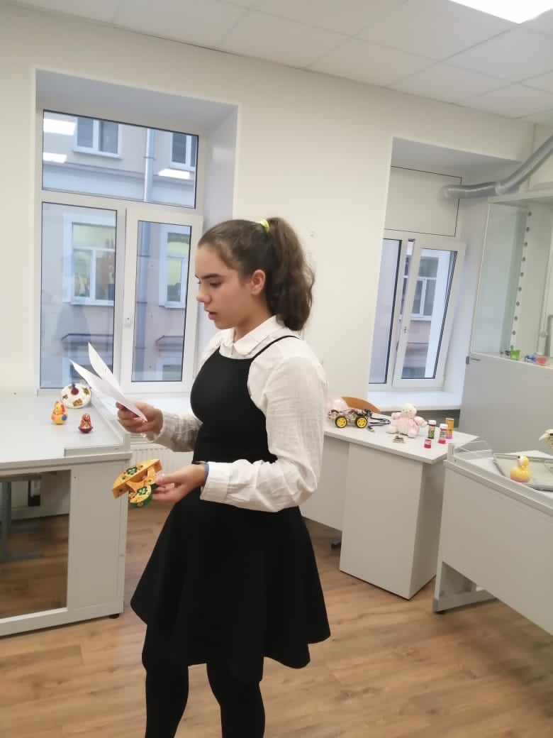 На уроке семиклассники представили свои игрушки: автомобили, неваляшки, калейдоскоп, магнитный конструктор и даже шарманку. Евгений Попов подготовил интересный видео-рассказ о юле.
