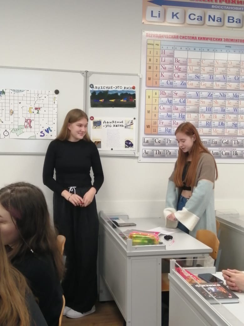 25 ноября на уроке физики в 10А классе состоялось обсуждение темы «Движение – это жизнь». Учащиеся подготовили проекты на эту тему в виде рефератов, презентаций, плакатов и кроссвордов. Решая кроссворд, повторили понятия: механическое движение, виды движения, траектория, назвали важные кинематические характеристики. Так же в ходе урока было показано значение двигательной активности для укрепления и сохранения здоровья человека. Обсудили, что такое гиподинамия и как ее избежать. В итоге был сделан вывод: «Движение – это жизнь». Хотелось отметить содержательные работы десятиклассников: Офицеровой Яны – плакат, Емельяновой Карины – реферат, Вишняковой Елены, Масловой Ани – кроссворд.