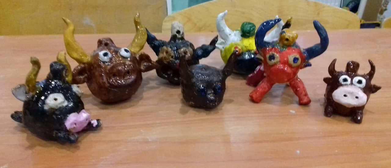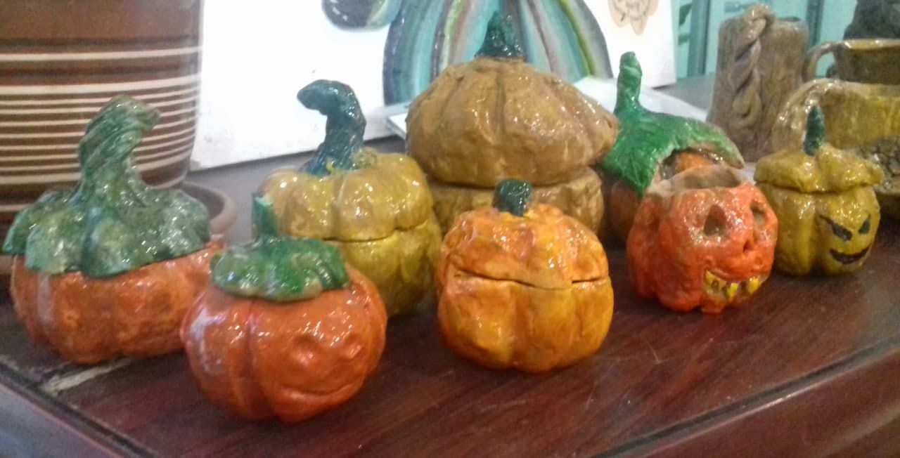 Представляем творческие работы, обучающихся кружка «Керамика», выполненные в 1 полугодии по темам: «Щедрая ладонь осени» (посуда), «Символ года», «Тыквы-шкатулки», «Рождественский вертеп».