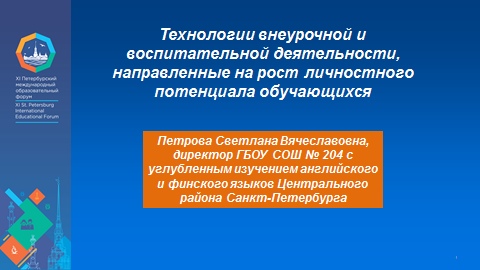 23 марта ГБОУ школа №204 представила опыт работы на традиционной пятой конференции «Лучшие практики внедрения ФГОС СОО» в рамках XI Петербургского международного образовательного форума. Конференция организована Санкт-Петербургской Академией постдипломного педагогического образования совместно со школами, внедряющими ФГОС ООО в опережающем режиме.